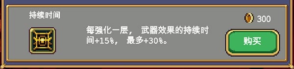 每强化一层,武器效果的持续时间+15%,最多+30%。