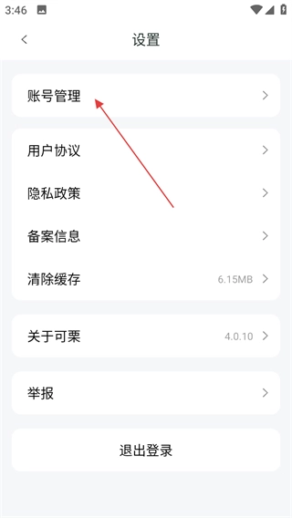 3、在设置页面,找到并点击账号管理选项。