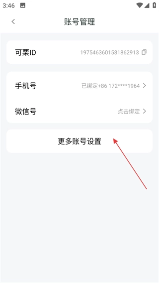 4、进入账号管理页面后,点击更多账号设置。