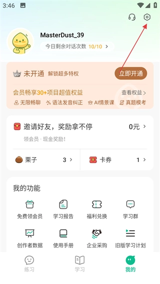 2、在个人中心页面,点击右上角的设置图标,进入设置页面。
