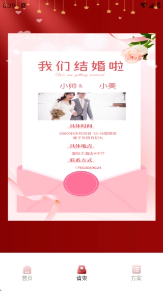 2、支持上传个人照片、视频和音乐,打造生动个性化的请柬,为宾客带来全新的互动体验。