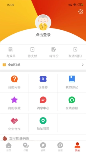 6、点击我的,可以查看全部订单和我的问答、我的游记、我的收藏、我的行程等