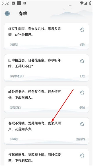 4、在春季唐诗页面,可查看相思等春季相关唐诗内容。
