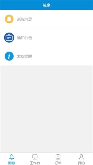 3. 在主页面即可看到系统消息、通知公告和发货提醒;