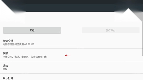 5、点击“应用程序信息”最下面的“权限”;