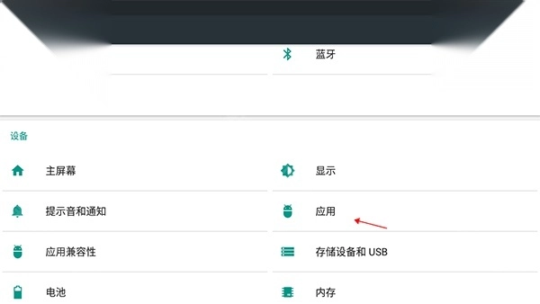 2、点击“设置”列表中“管理应用程序”;