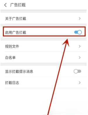 4. 点击开启【启用广告拦截】就可以了。