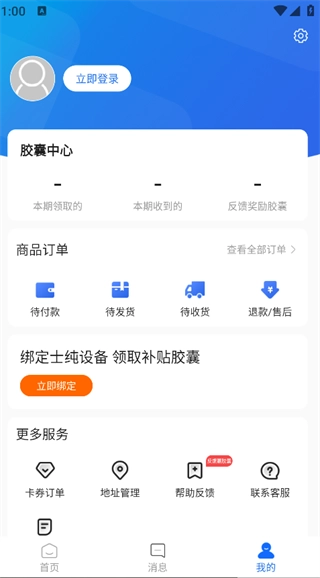 4. 点击页面底部的“我的”选项,就能登录账户,查看订单详情,使用卡券订单、地址管理等功能。