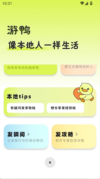 游鸭作为一款旅游服务类应用,主打本地化旅游建议服务,同时将社交分享与行程规划两大功能相融合。它深度整合了本地人真实的旅行经验,信息覆盖范围广泛,从特色美食到独特的文化体验应有尽有。此外,还配备了可视化地图来辅助用户进行路线规划,并支持根据个人需求生成专属的个性化方案。不仅如此,游鸭还能为用户匹配地陪向导,助力用户进一步深化旅行体验,让大家在出行过程中既能省心,又能感受到有深度的旅行乐趣。