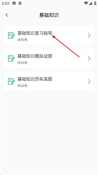 2、在基础知识页面,点击基础知识复习指导,进入基础知识复习指导列表页面。