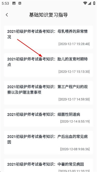 3、在基础知识复习指导列表页面,点击想要查看的内容,进入该内容详情页面。