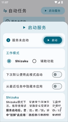 3、实现简单快捷的启动服务,选择各种模式或条件来执行任务。