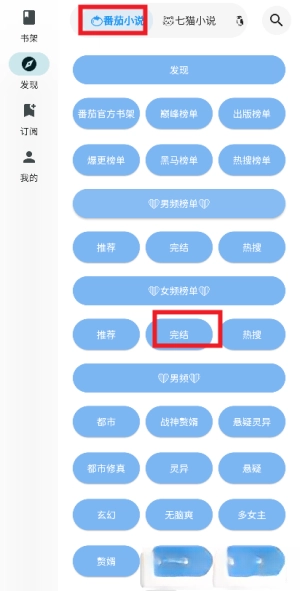 2. 在这里选择自己喜欢的小说平台,或是想看的小说类型。