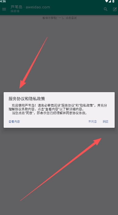 1、点击启动软件,认真阅读客户端内的服务协议与隐私政策,确认同意后点击进入。