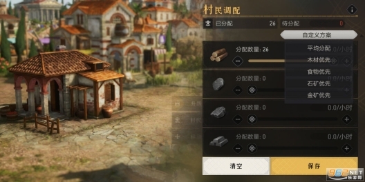 居民房舍后,可以调配里面的村民,按需生产四种材料。