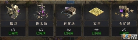 磨坊和伐木场,产出食物和木材。