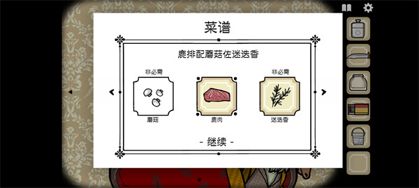 当把鹿先生右上角绿框中的鹿头装饰放大后,首先点击紫框,直至无法继续点击,接着点击粉框,此时左边会生长出来。在白框位置点击后,会长出植物,进而得到迷迭香。之后继续点击粉框,骷髅下方会滴出红色液体,用玻璃瓶接住,就能得到塔巴斯科辣椒酱。