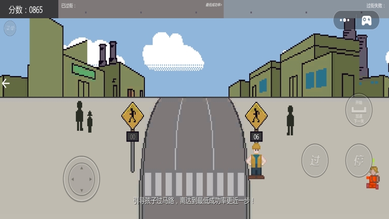 1玩家仅需进行简单操作,留意过往车辆,协助小朋友们安全穿过马路。