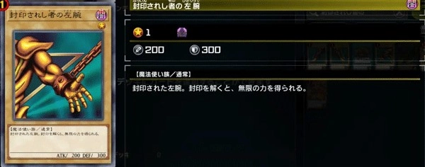 效果:描述:被封印者的左腕。封印解开后将得到无限的力量。