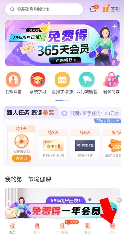 1、打开软件进入主界面后,点击右下角的个人选项