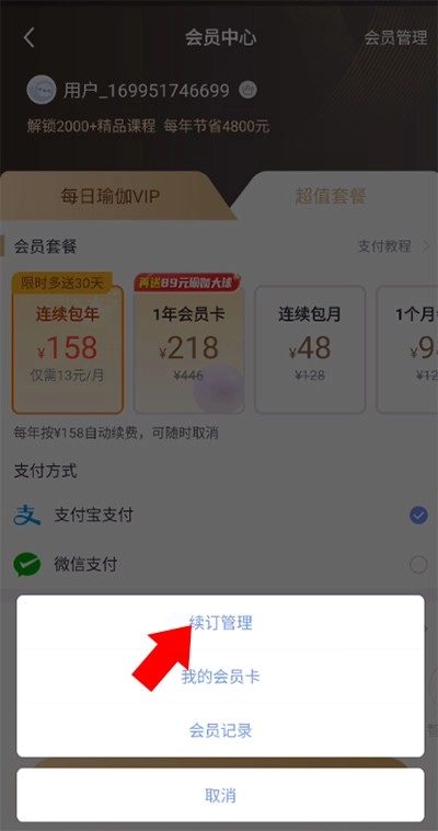 4、接着点击续订管理并取消续订即可