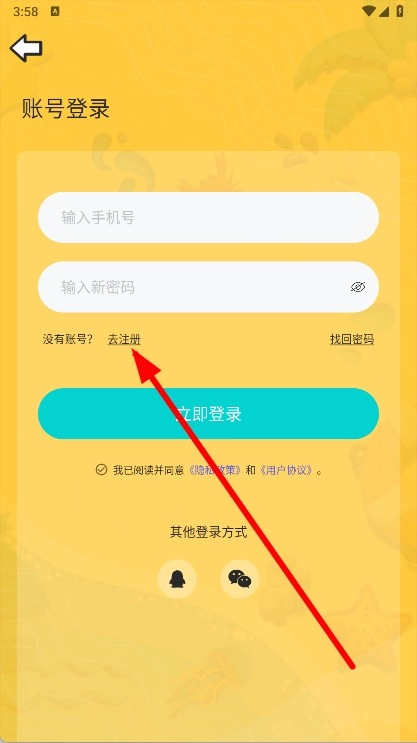 3、在账号登录页面,点击去注册。