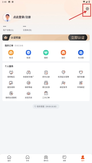 1、启动汽车服务类应用程序,点击界面底部的“我的”选项卡,跳转至个人中心界面。