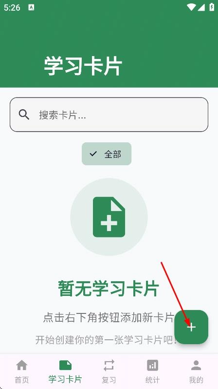 3、在学习卡片页面,点击右下角+按钮,进入创建学习卡片页面。