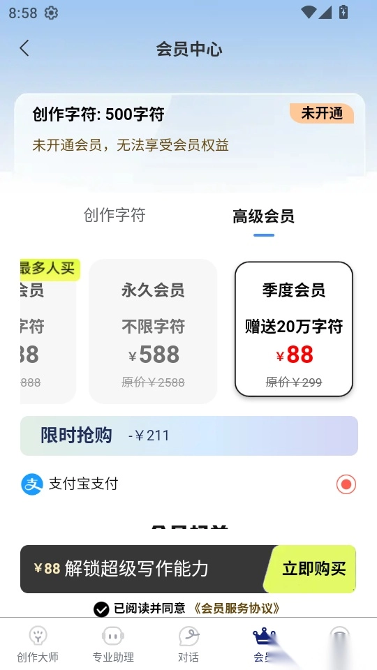 5.如此用户点击“高级会员”后选择对应套餐在点击“立即购买”就完成了