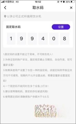 在设备的触摸屏上输入取水码,就能轻松取水。