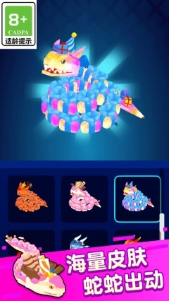 1游戏里的贪吃蛇模样十分可爱,有着丰富多样的外观,而且玩家能够自行定制它们的皮肤。