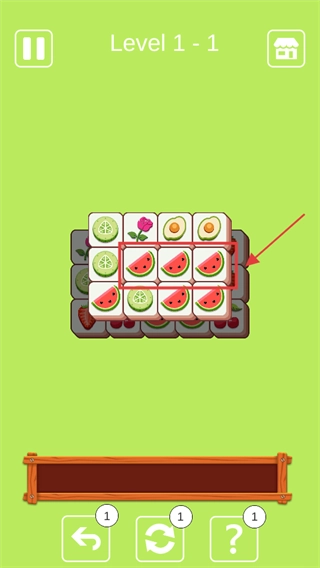 2、于关卡里找寻图案相同的方块,比如【西瓜】,点击三个一样的方块就能消除,从而推动游戏进程。