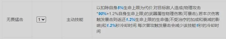 流派养成建议:重点提升体质属性,要增加最大HP上限,同时对攻击速度与暴击有较高要求。角色进阶二阶后,由于无畏猛击技能的冷却时间过长,所以需适当提升急速属性。为了练级便利,前期推荐主要提升力量属性,当暴击、攻速、急速都满足基本标准(最终暴击率达到80%,最终攻速达到600%,技能冷却缩减20秒以上)之后,再把主属性转回体质。