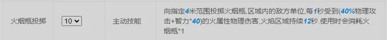 流派养成推荐:主智力,堆主属性、急速、物理穿透,二转时期依靠火烟瓶投掷打伤害,消耗过高,推荐前期用锤炼流派过度,到进阶二转后学会喷射火焰后,可以较好练级