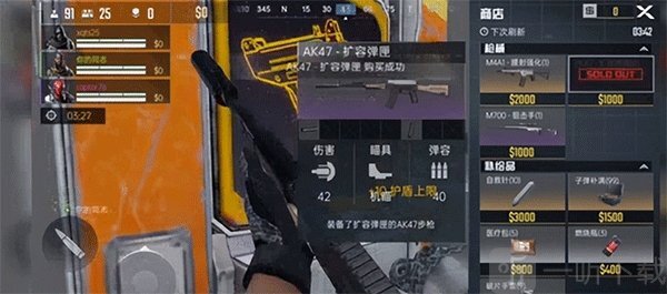 5. 另外,玩家可以在商店购买武器配件以及医疗用品,来提升自己的战力水平,最后消灭其他玩家,获得胜利。