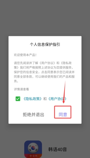 1、轻点同意选项,即可进入应用,开启专属于你的韩语学习奇妙之旅。