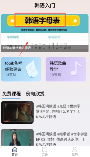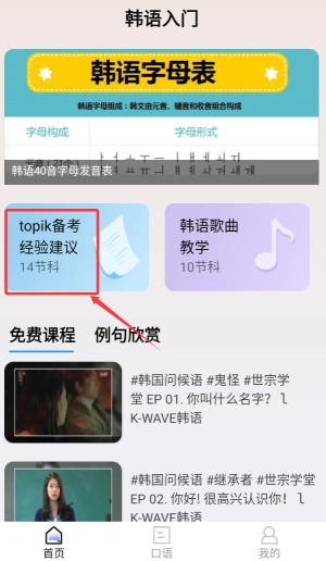 2、在韩语口语教学板块,提供海量丰富且实用的口语练习材料,搭建逼真模拟对话场景,让你在实战中提升口语表达能力,自信开口说韩语。