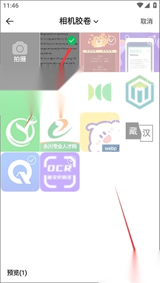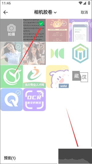 2、比如从相册选图,找到你要翻译的藏文或汉文图片。