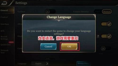 选择简体中文后,游戏提示需要重启,点ok重启游戏。