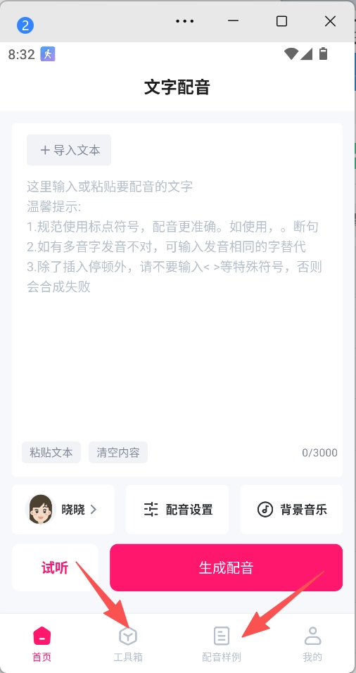 《配音大师》支持文字配音功能,用户可导入或粘贴需配音的文字内容,规范使用标点符号有助于提升配音精准度;同时还能挑选配音人员、调整配音参数以及添加背景音乐。其工具箱涵盖多人配音、视频配音等实用功能,此外还配备了音频降噪、背景音处理、文案提取等辅助工具。配音样例则划分有抖音热门、广告促销、童声、方言等多个类别,并提供多款不同的配音角色供用户选择。