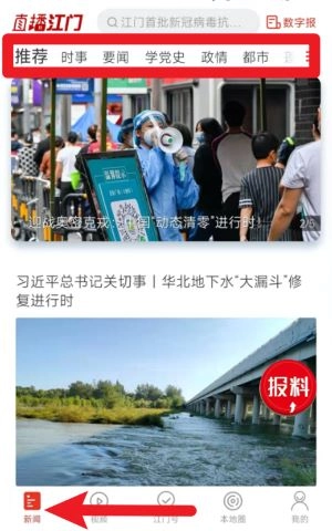 1、点击“新闻”板块,在推荐页面中能够浏览时事热点、政策要闻以及突发新闻,便于用户迅速获取本地的权威资讯。