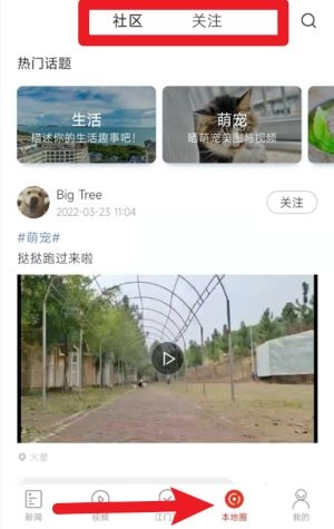 3、进入本地圈版块后可参与社区互动话题,如晒萌宠、美食、生活趣事等内容并支持评论。