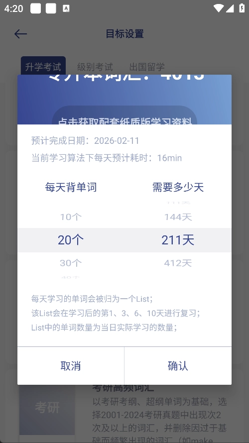 3、词汇本更换完成后就可以修改计划了