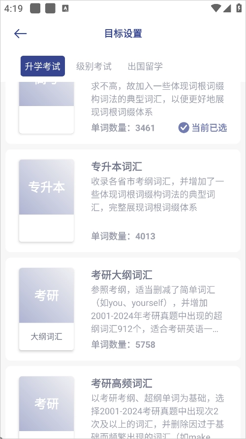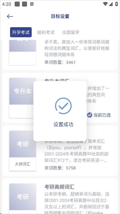 4、操作简单。只需要设置目标并开始,本软件会依据算法随时进行巩固复习。