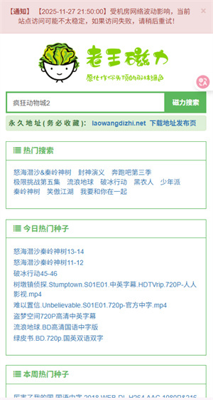 1、打开老王磁力,搜索你要的资源(这里灵宝小编以最新的“疯狂动物城2”为例)