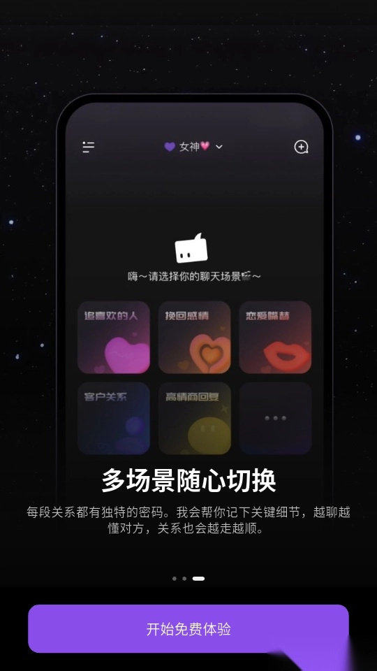 软件提供了多种沟通场景,用户可以随心切换,适用于多种场景的灵感回复。