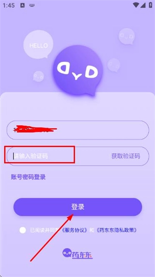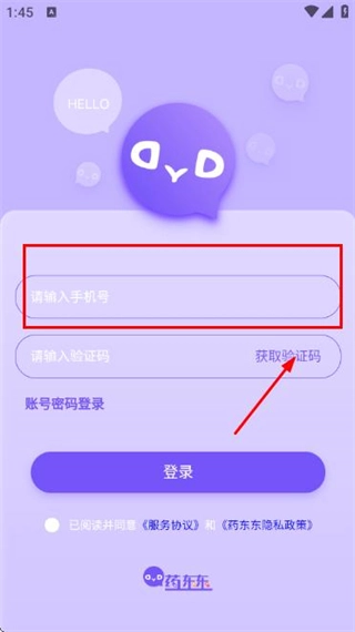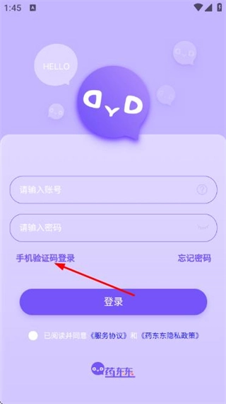 在药东东的登录页面,选择“手机验证码登录”选项,即可切换至对应的登录界面。