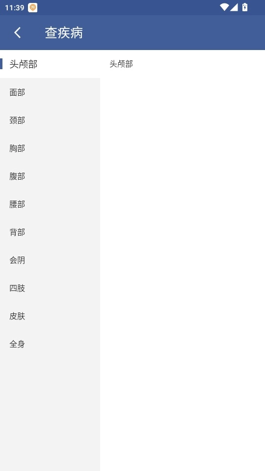 3.进入到查疾病页面中可选择身体部位类型点击进入