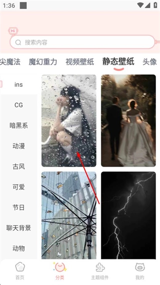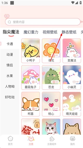 2、在分类页面,点击静态壁纸标签,切换至静态壁纸列表。