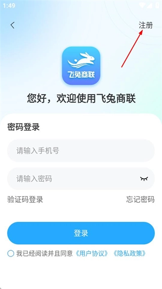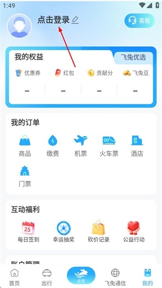 在飞兔商联首页,点击底部的“我的”选项,即可进入个人中心页面。